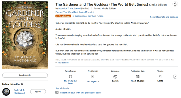 A quick note to say thank you thank you to everyone who bought my book, and have allowed me to be the #1 new release in Inspirational Spiritual Fiction! Yes, that is a niche category, but the story fits it, and I am truly delighted to see my book with an orange banner beneath its name.